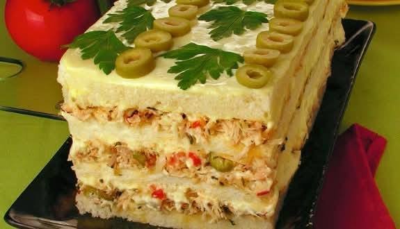 INGREDIENTES: 2 pacotes de pão de forma Recheio: 2 peitos de frango2 tomate picado sem semente1 cebola grande picada3 dente